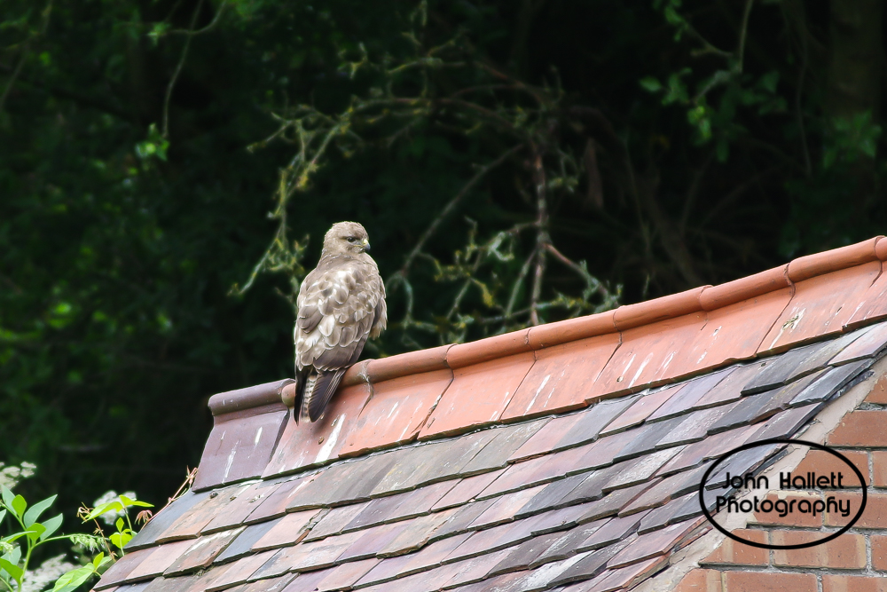Seems that we have a new inhabitant in the garden. I first saw it on the roof of one of my sheds this morning – and then later on a telegraph pole in front of the garden. A buzzard ??