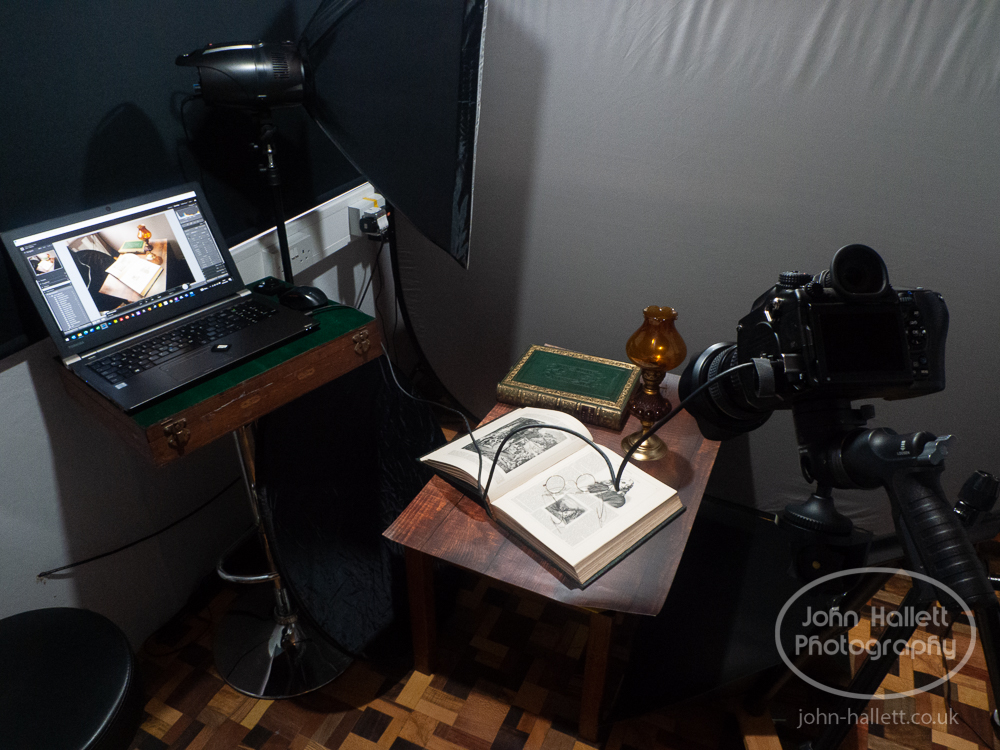 Once the exposure settings were decided I could then tweak the layout of the shot, moving the lamp. books and glasses to create a look that I was ultimately happy with.