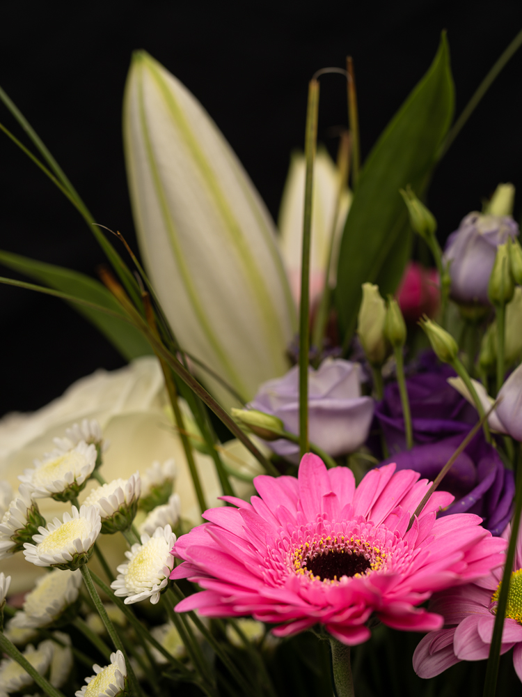 OK, it’s not exactly a gardening quote but it sprung to mind as I took these shots. Mrs H recently received a lovely bouquet as a reward for looking after her sisters dog whilst she went away for a few days. It was therefore opportune to grab a few photographs of the blooms whilst they were still at their prime and so I took them outside under an overcast sky to make the most of the diffused light.