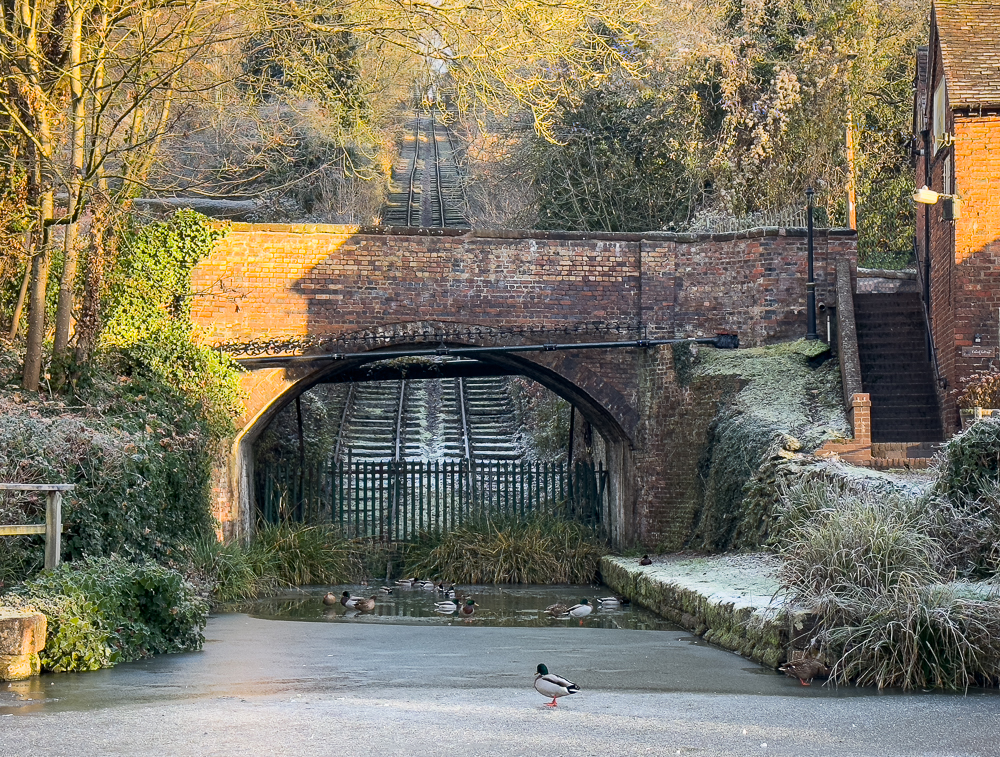 Another shot of the Shropshire Canal at Coalport in the Ironbridge Gorge, but this time looking towards the Hay Incline Plane. This amazing piece of Victorian engineering was built in 1793 to transfer flat-bottomed ‘tub’ boats full of coal from a canal at the top of the valley down to this canal at the bottom. A tub boat would be slid onto a wheeled cradle to keep it level and then the weight would take it down the rails, pulling an empty tub boat back up at the same time. A steam-driven ‘brake’ at the top controlled the speed.