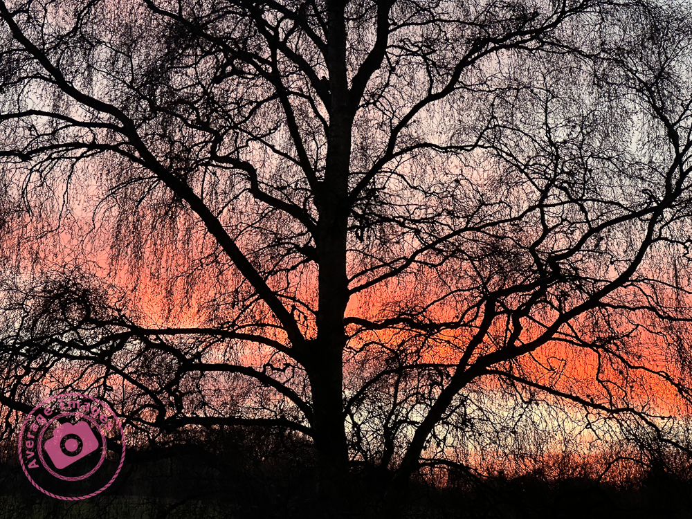 As the barometer headed for the top of the scale in early February, the rising air pressure led to a stunning red sunset and I managed to grab this shot with my iPhone through the branches of our silver birch tree. There’s a photography ‘rule’ that says that you should never allow the frame to be cut in half, but I think that it works well here and so prefer the adage that “rules are made to be broken”.