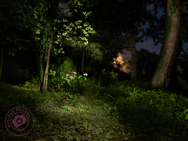 In a departure from my usual type of photography, I have just tried some Painting with light. I have seen plenty of long exposure night photographs over the years (in fact I’ve taken a number myself), but they have generally been the light trails from cars, illuminated architecture, or spinning balls of glowing wire wool. Then I came upon Dirk Ercken, who previously inspired some of my flower photography (see April showers may bring flowers), and who also does Painting with light photography, often on a small scale – sometimes the interior of buildings or small woodland scenes. This is much more appealing to me, so I thought I’d give it a go.