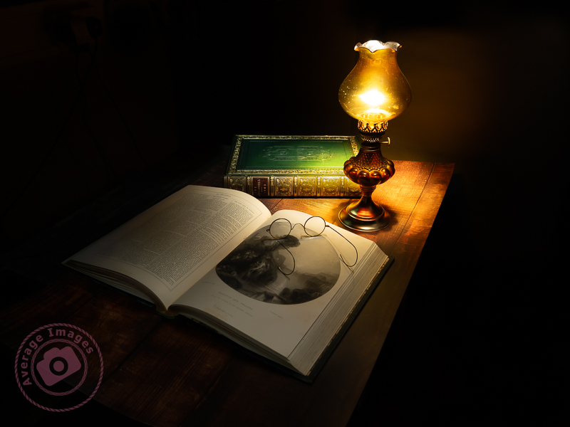 The subject of the image featured in this blog post is actually a recreation of a recreation. If you check back on my blog post The Art Journal from March 2022, you will see that I describe how I replicated a previous shot of an oil lamp and some antique Art Journal compendiums because the original image had been lost. On both previous occasions, I had used a single light source from the lit oil lamp itself, which, although atmospheric, had created some deep shadows. In this second recreation, I decided to use Painting with light to illuminate the scene (and didn’t actually light the oil lamp at all). It is a composite image, with blending modes and layer masks combining just 4 individual shots (although I took 19 shots during the actual photoshoot just to be sure that I had illuminated every part of the scene). I have to say that I am pretty pleased with the result – the lighting is far more controlled than just using the oil lamp as a light source, and to try and achieve this effect using studio strobes would have been very time-consuming and complex.