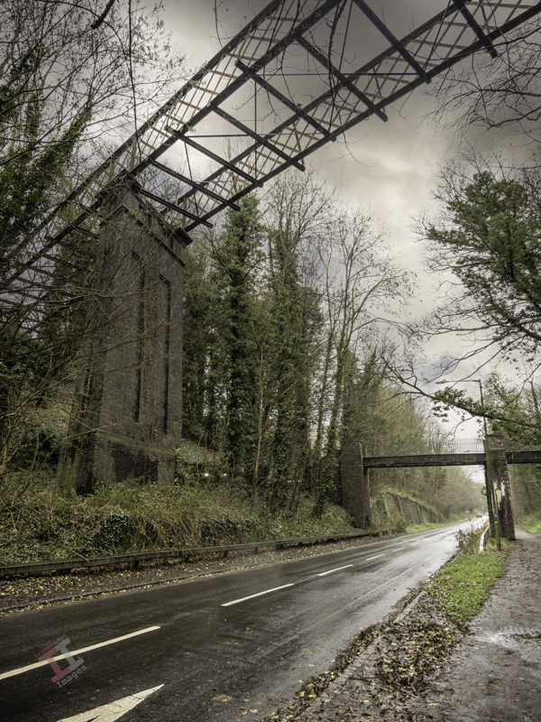 After travelling down Legges Way for less than a half-mile, you will see two bridges crossing the road. The much taller one is called the Lee Dingle Bridge, built in the 1860s with impressive, tall, blue abutments carrying a lattice-girder frame. It was designed to carry a tramway, carrying coal from the nearby Meadow Pit colliery to the Blists Hill ironworks. Initially, it was painted cream, then blue, and it was much later in the 1960s when it was overpainted with its current grey colour. The smaller one was built as a footbridge when the railway was built, probably to allow workers to reach the Blists Hill ironworks and brickworks from Madeley town.