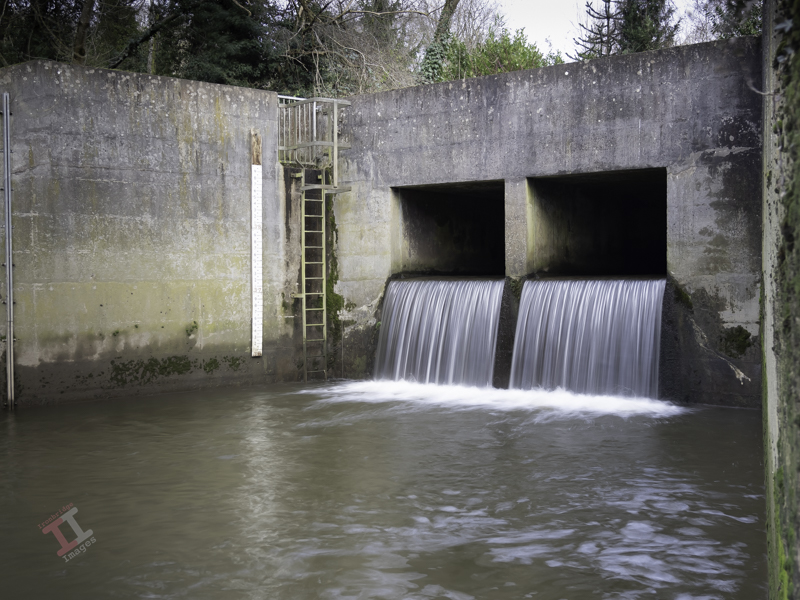 A little way after the tunnel, some metal fencing denotes the point at which the pipeline leaves the old railway line and continues downwards through the trees to the outflow into the River Severn. The pathway then reverts to the original level of the railway line.