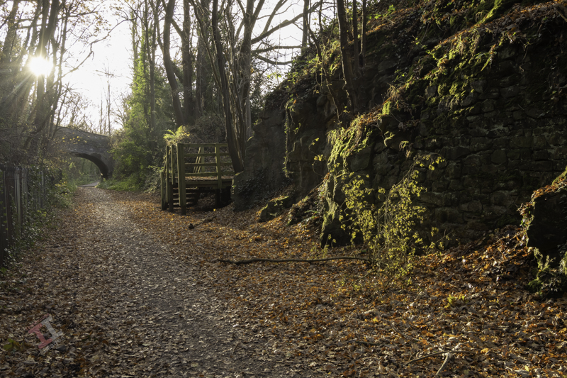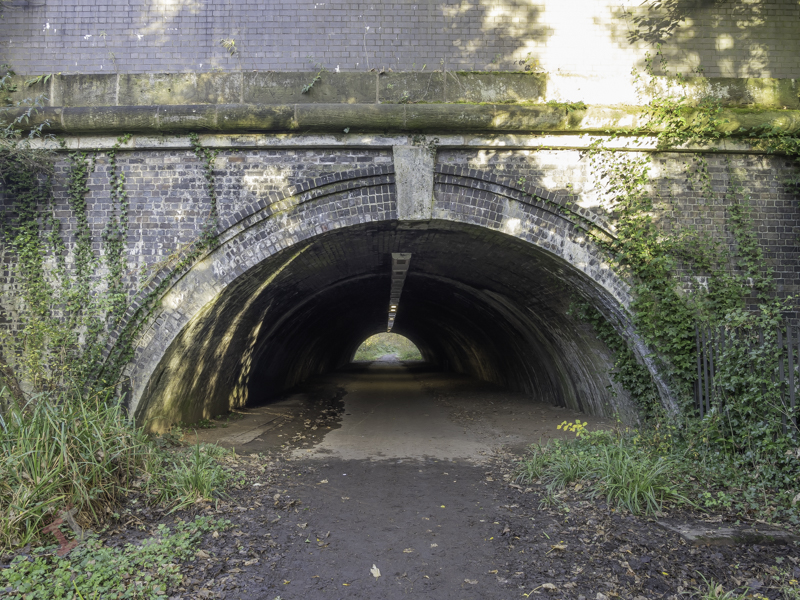 At first glance, you may think this is just not high enough for a steam train to pass under – and you would be correct. In the 1960s, a huge double-pipeline was installed to take the storm water from the southern end of the newly developing New Town of Telford. Rather than dig a trench, they just laid the pipeline on top of the old railway track bed and covered it over. Hence, the pathway is much higher than the original railway track.