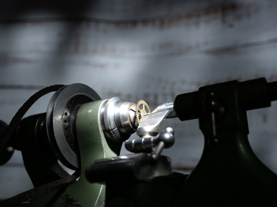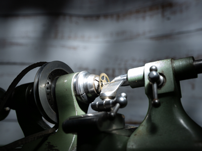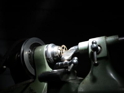For example: If we don’t want to see the right-hand side of the lathe as lit by the torch, we open a layer mask and, with a black brush, paint over that section.