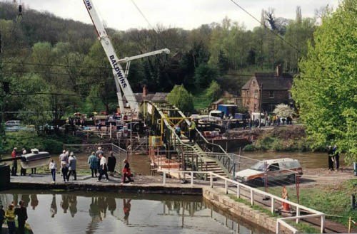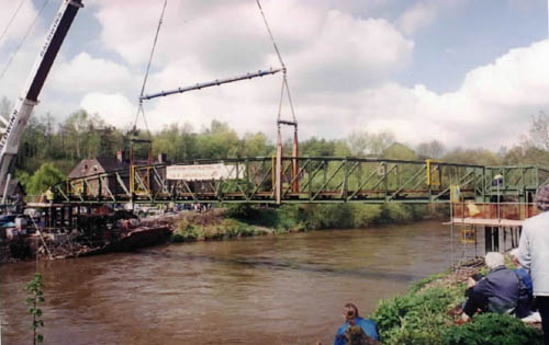 One such area is at a point between Jackfield and Coalport, immediately adjacent to the Hay incline plane. Initially, a ferry provided transport for people crossing from one side to the other, which was useful with industries expanding in the area, particularly John Rose & Company, who had closed their china works in Caughley and Broseley and relocated to Coalport – but leaving the workers now having to cross the river to attend their place of work.
