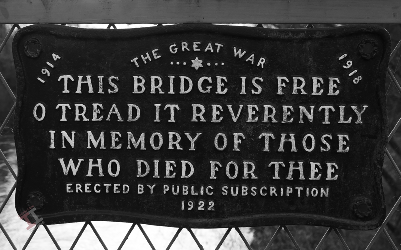It is perhaps due to this latter tragedy that thoughts of a footbridge were mooted and, in 1922, one was built from public subscription to commemorate the 26 servicemen from the villages of Jackfield and Coalport who lost their lives in the Great War (the First World War).