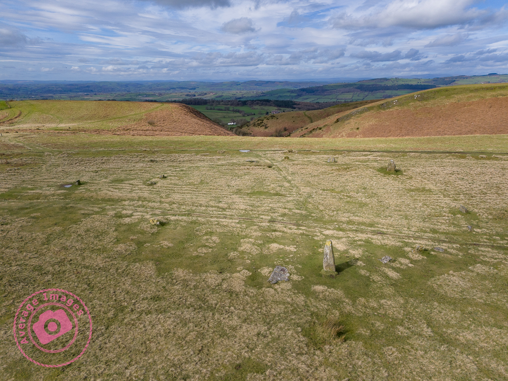 Today is Mrs H’s birthday and so we celebrated by taking the dogs for a walk in the Spring sunshine. We opted to visit the the Mitchell’s Fold stone circle at Stapeley Hill, just over the Welsh border, close to Montgomery. It was a good trek across the moorland, very muddy in places (following the long, wet, Winter) and quite breezy at the top of the hill, but otherwise very pleasant in the warm sunlight.