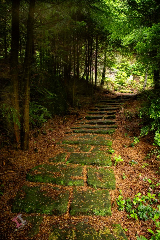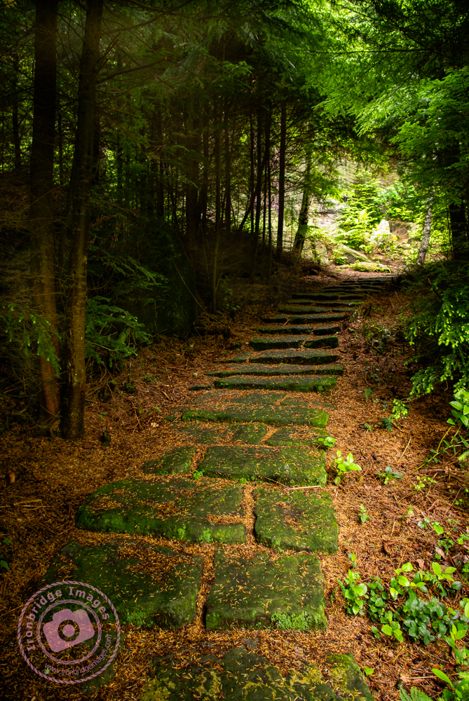 One such shoot was at at Cragside (National Trust) located at Rothbury, near Morpeth – the house and gardens of which were created by an inventor, Lord Armstrong. Within the estate is a Pinetum, a collection of the tallest pine trees in the country, and as we walked down a paved path between the trees, I happened to look back to see the image that I captured below – which looked rather like a tunnel, with sunlight showing in the distance.