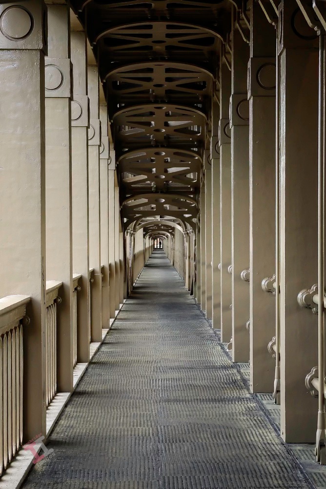 The High Level Bridge over the river Tyne at Newcastle taken during our honeymoon week back in 2008. It was our first visit to the city and my brother-in-law took us for a whistle-stop tour, which included crossing the river on this iconic bridge. I happened to look back and took this shot which highlights the perspective, with the repeating arches and columns receding down the passageway. I can’t remember now whether the lone figure at the end was a lucky coincidence or the result of patience and timing.
