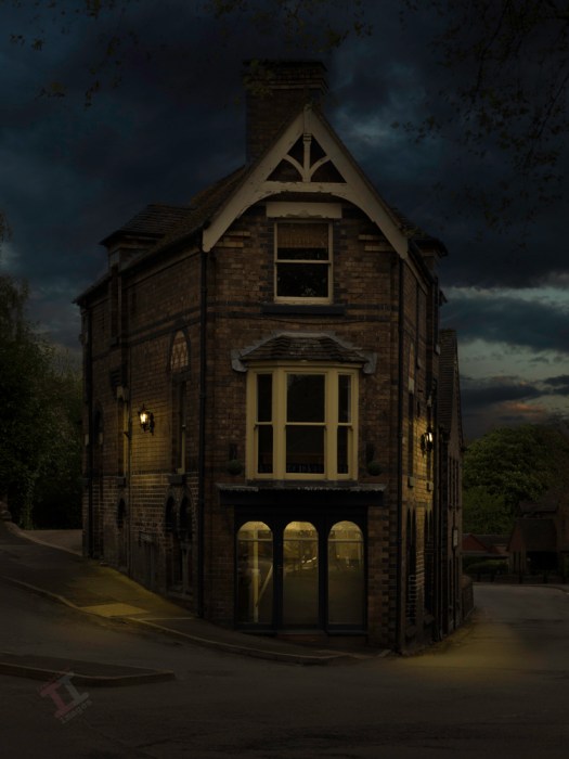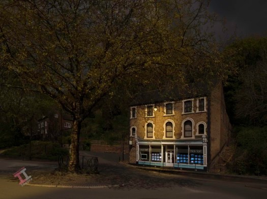 These day-to-night conversions favour architectural shots, particularly when windows and exterior lights can be ‘lit’ to create character. I am fortunate to live in the Ironbridge Gorge, which contains many interesting buildings (and quirky street lamps) and so I can take the ‘stock’ images as I am walking our dogs in the morning (as I did here), without having to concern myself too much about the quality of light.