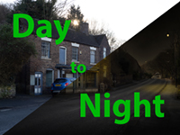 A series of post-processing conversions of a daytime scene into a night-time one.