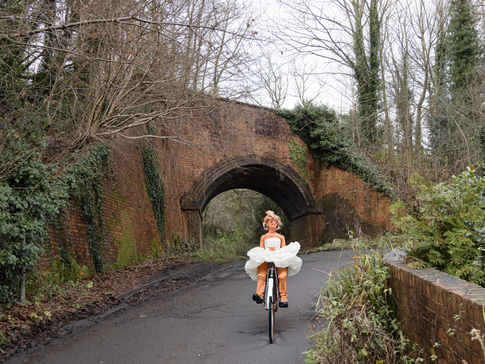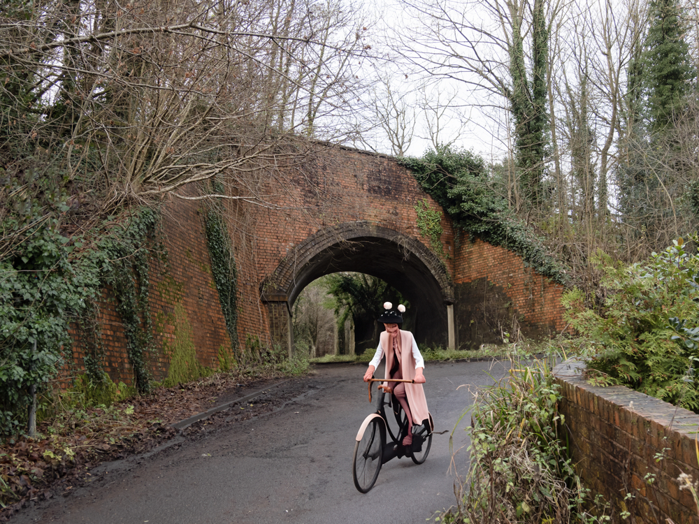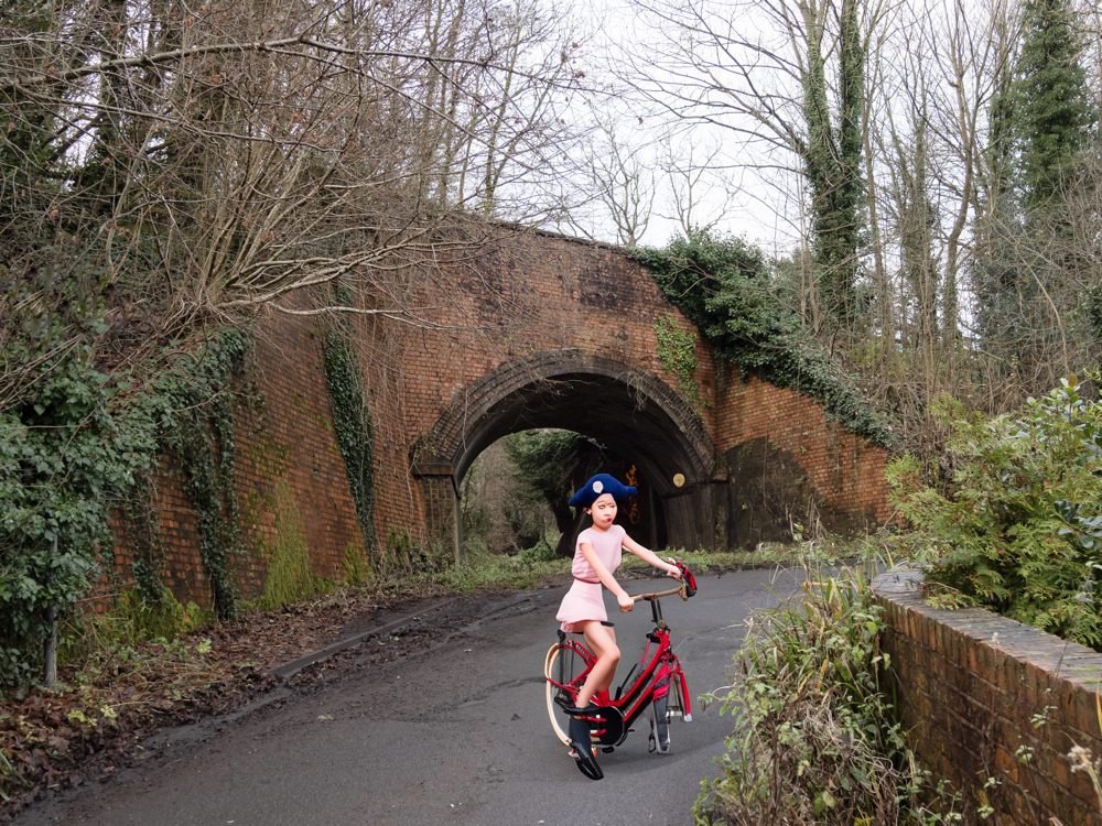 I had an idea to add “a Victorian girl on a bicycle” to one of the images using the ‘Generative Fill’ function of Photoshop, which uses Artificial Intelligence (AI) in order to create elements within an existing image. Here are the suggestions it gave me:
